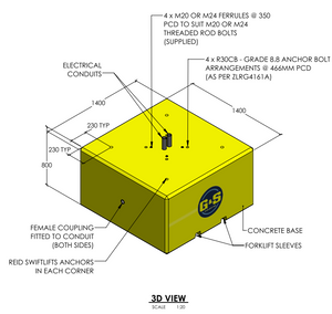 Precast Concrete Base with Fork Sleeves & Lifting Points - 1400 x 1400 x 800mm