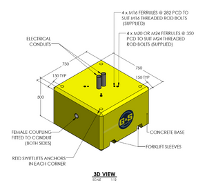 A heavy-duty precast concrete base designed to provide a stable and reliable foundation for poles, structures, and site equipment. Ideal for both temporary and permanent installations, this unit offers a practical alternative to in-situ concrete footings.
